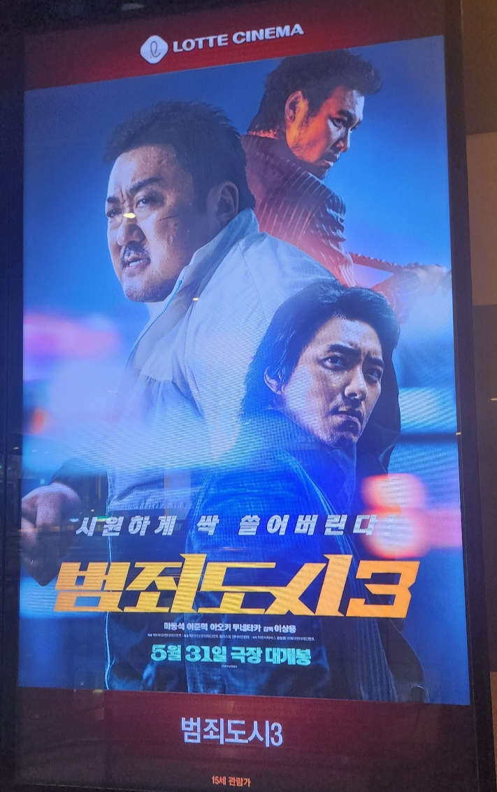 범죄 도시 3은 전편에 비해 과격함과 잔인함은 덜고 유머와 위트가 많아졌습니다. 또한 한방의 묵직한 핵주먹을 주 무기로 삼던 마석도가 위빙을 하고 훅, 잽 등 사용하며 액션에 변화가 있어서 다양한 액션을 보는 재미를 주었습니다. 화려한 액션과 유머는 좋았지만 그 외에는 전편에 비해 약한 듯합니다. 특히 빌런이 이번엔 두 명인데 나누어서 추격하다 보니 이야기가 부족하고 빌런들의 강함이 분산된다는 생각이 듭니다. 또한 장첸과 강해상을 생각하면 소름 끼치도록 나쁜 놈이다라는 생각이 들었지만 주성철과 리키는 거기에 비하면 빌런으로써 주는 캐릭터의 힘은 약해 보입니다. 또한, 마석도를 제외하고는 다른 광수대 팀원들의 존재감이 너무 밋밋하게 느껴졌습니다. 특히 이범수와 쿠니무라 준은 연기 잘하기로 소문난 사람들인데 너무 아쉬웠습니다. 그래도 믿고 보는 우리 마블리의 액션과 위트 있는 유머는 영화 보는 중간중간에 웃음을 주었습니다. 마동석만의 유머는 알고 있어도 보면 웃기고 유쾌합니다.